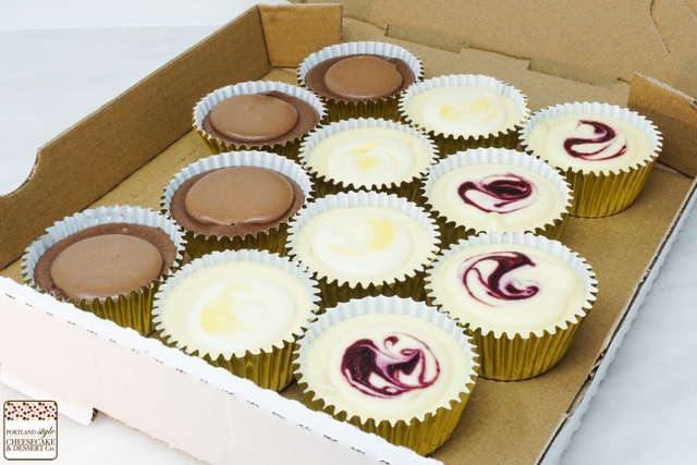 Assorted Cheesecake Cupcakes – 4 each Chocolate, Marionberry, Lemon